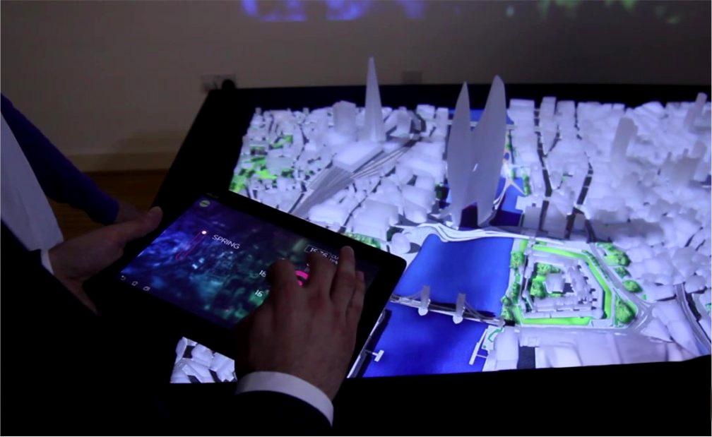 數(shù)字沙盤是用投影投射在物理模型上,利用聲光電進(jìn)行展示的沙盤系統(tǒng)。投影沙盤又稱數(shù)字沙盤投影系統(tǒng),分為實(shí)體模型與虛擬影像相結(jié)合及全虛擬兩種。所謂數(shù)字沙盤就是以計(jì)算機(jī)技術(shù)為核心的現(xiàn)代高科技手段生成逼真的三維圖像模型,借助投影顯示設(shè)備或其他顯示設(shè)備把計(jì)算機(jī)上的三維或四維圖形圖像模型顯示到臺(tái)面上。具體地說,就是將模擬的三維立體影像精確投影到實(shí)體模型的相應(yīng)位置,與實(shí)體沙盤互動(dòng)展示的演示相映成輝,使沙盤的演示效果更加形象、生動(dòng),還可以是桌面投影、地面投影、墻面壁投影顯示等,參觀者以自然的手勢動(dòng)作與大屏幕投影的三維模型交互作用,多方位多層次瀏覽查詢,從而快速地獲取簡明、精確、優(yōu)美、逼真的動(dòng)態(tài)信息。